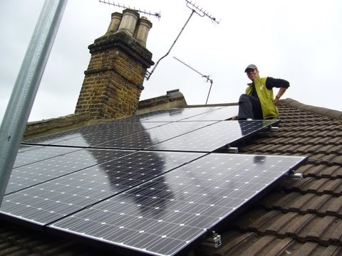 Back extension 5m x 2.5m slate roof, sept.2011 a 1.5kwp system, 6 sanyo hybrid 250w modules will produce about 40% of the electricity needed by an elderly lady in this house.