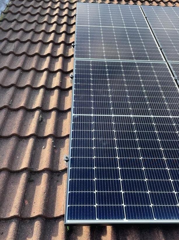 Solar panels fixed onto a pan tile roof 400 watt mono solar panels. also all black panels available too