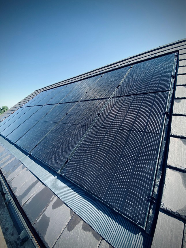 All black domestic install. do you find the sight of blue and silver solar panels off-putting? why not install these beautiful all-black panels instead. viewings can be arranged.