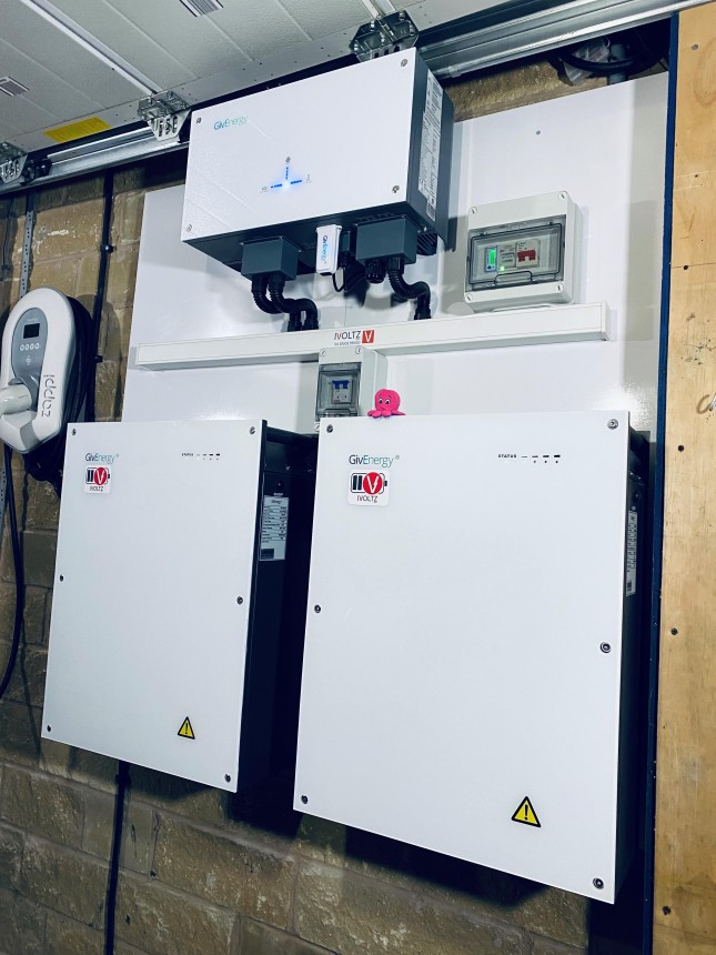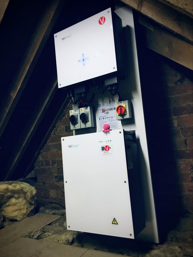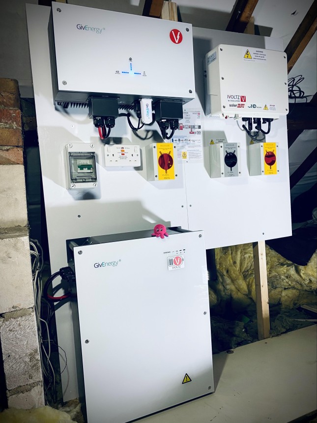 Solar pv and battery storage givenergy hybrid inverter with 8.2kwh battery pack with octopus energy off peak charging.