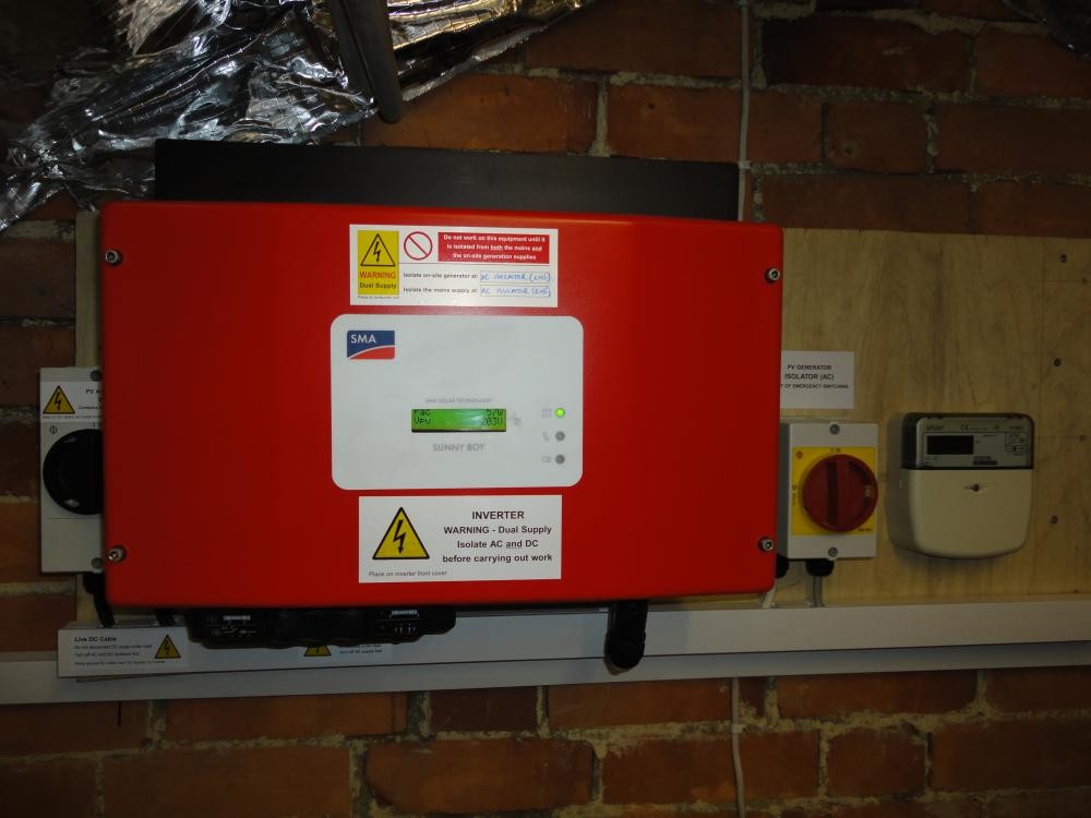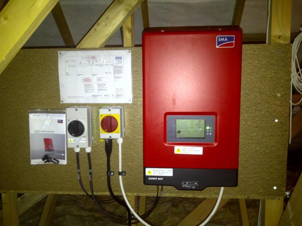 Chineham, basingstoke - 2 here is the inverter mounted in the loft. system info: size of system: 2.4 kwp yield: 1914 kwh payback period 7.0 years