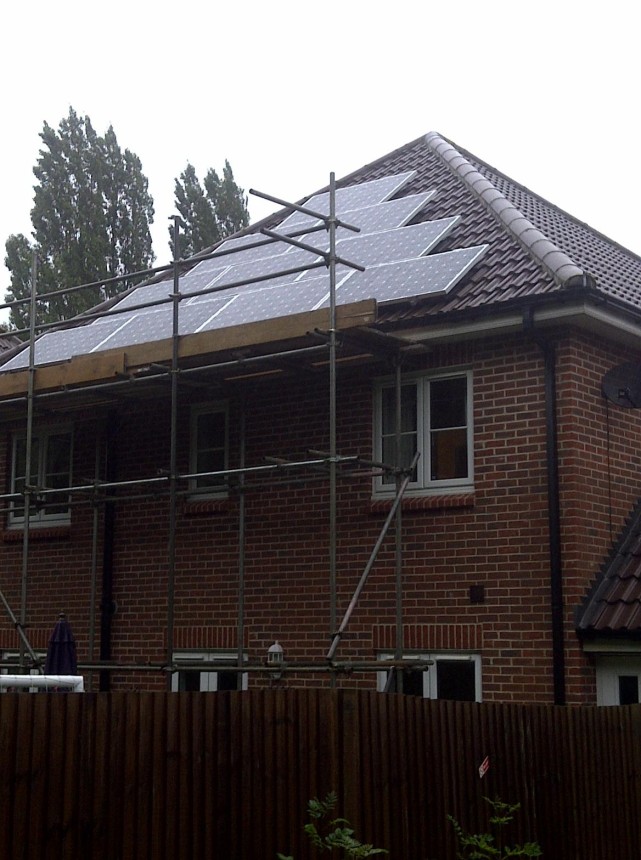 Burgess hill development 2 this was a new build development and smart electrical services installed 12 x 0.7kwp of solar pv for houses and 3.675kwp for a block of 6 appartments. we installed the solar pv smoothly, in time for the developer to run the site eg. within times when scaffold was erected and for handover to their client. the solar pv allowed the developer to achieve code 3 for the development. when i finished the site i has a quick look at the generation from the system on the flats (this is a large system for a house) and it had generated 988 kwh in only a few months. thats a fantastic return of â£428.00 from the feed in tariff alone without export and fuel savings.