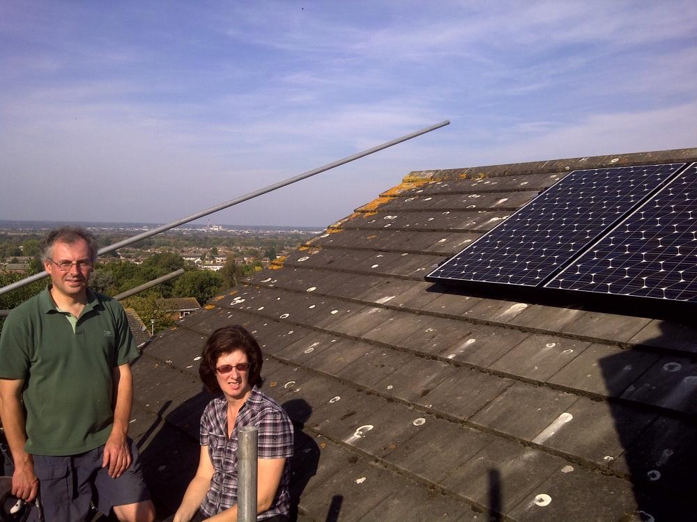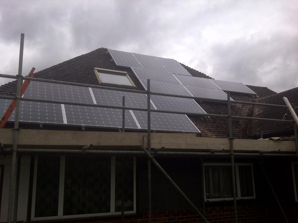 Windsor, berkshire this installtion included an east/west install of 13 x sanyo 250w hit e01 pv panels. the customers (mr & mrs barber) were very happy with the job, which included the changing of their outdated fuseboard. on testing the existing circuits, we found problems with the wiring that were a danger. the potentially danegerous wiring which could have led to an electric shock was re-wired. the client has the solar pv system they wanted, fuseboard changed and remedial work to eliminated dangerous wiring. when you are getting 3 quotes from pv companies can they offer you this service? we are electricians and if something needs improving we do it because it is right to do so. if the job takes us longer we dont mind as we like to leave site 100% happy with the quality of work we have completed. we are not like most pv companies who just want to slap up panels, take the money and move to the next job.
