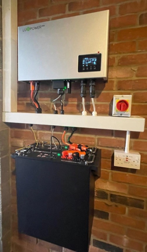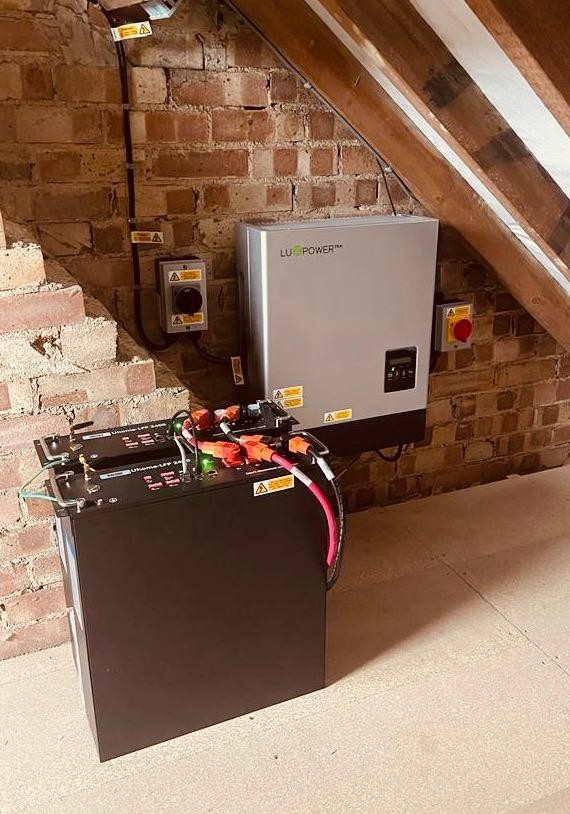 Lux power battery storage 9.6kw of battery storage in milton keynes, using lux power inverter and 4x 2.4kw u-home lithium iron battery’s .